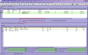 - Belépéskor a „Raktár” ablakban látjuk a kiválasztható raktárakat (1) . Miután kiválasztásra (raktár sorra kattintva zöld lesz a kiválasztott raktár sorának alapszíne) került a raktár a „Leltár” ablakba kattintva F6 billentyű megnyomásának hatására megkapjuk a „Rögzítés” státuszú leltár sort.